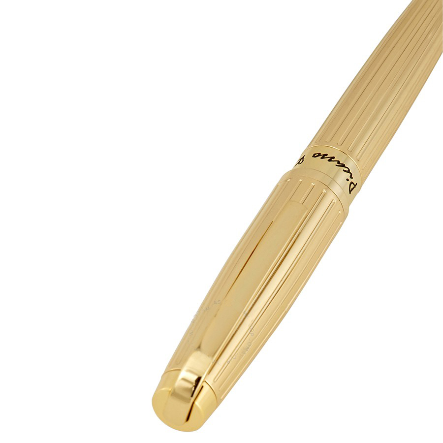 بيكاسو اند كو قلم رجالي حبر جاف مطلي بلون ذهبي خالص مع خطوط مشعة محفورة على كامل جسم القلم الخارجي لاقط معدني ذهبي اللون نوع الخرطوش: بول بوينت حجم الخط: 0.5 مم. مع علبة فخمة