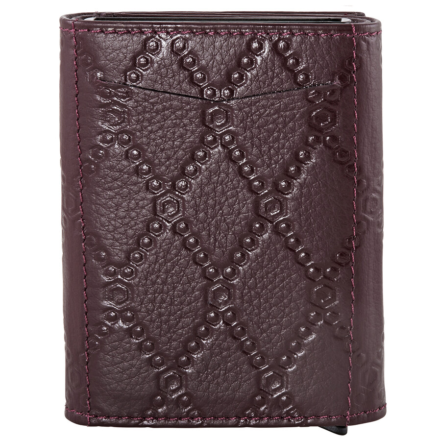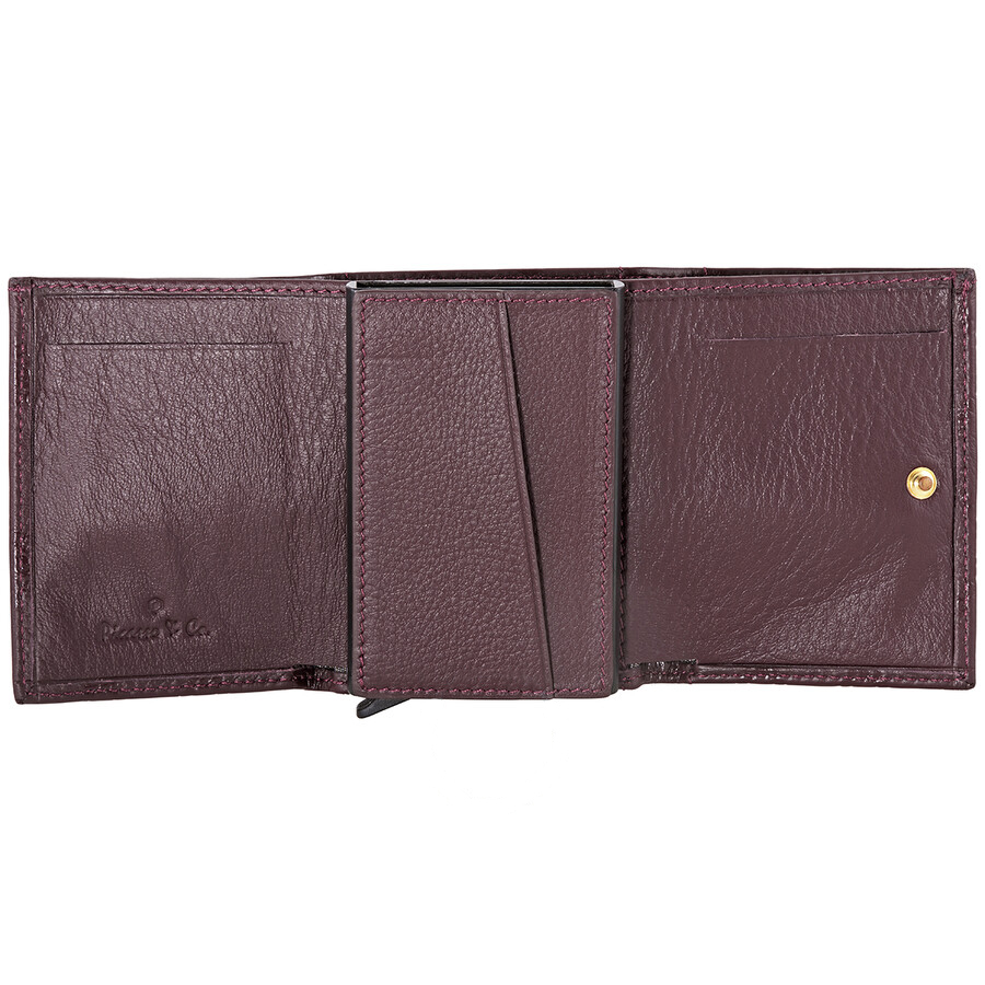 حامل بطاقات من جلد العجل باللون العنابي وصندوق من الفولاذ المقاوم للصدأ Picasso and Co. لذلك يتميز حامل البطاقة هذا: 1 حجرة نقدية ، 4 فتحات لبطاقات الائتمان ، 6 داخل الصندوق المصنوع من الفولاذ المقاوم للصدأ بالإضافة إلى نظام منزلق.